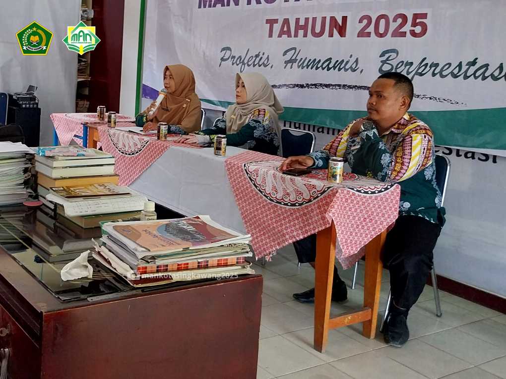 MAN Kota Singkawang mengadakan kegiatan ramah tamah antara guru dan tenaga kependidikan bersama Kepala Urusan Tata Usaha (KAUR TU) yang baru, Ibu Hj. Kasmini, M.Pd. Acara ini dilaksanakan di ruang guru sebagai ajang perkenalan dan silaturahmi. Dalam sambutannya, Ibu Hj. Kasmini memperkenalkan diri secara singkat kepada seluruh guru dan tenaga kependidikan, serta menyampaikan harapan agar dapat menjalin kerja sama yang baik, solid, dan harmonis dalam menjalankan tugas-tugas administrasi dan layanan pendidikan di madrasah.