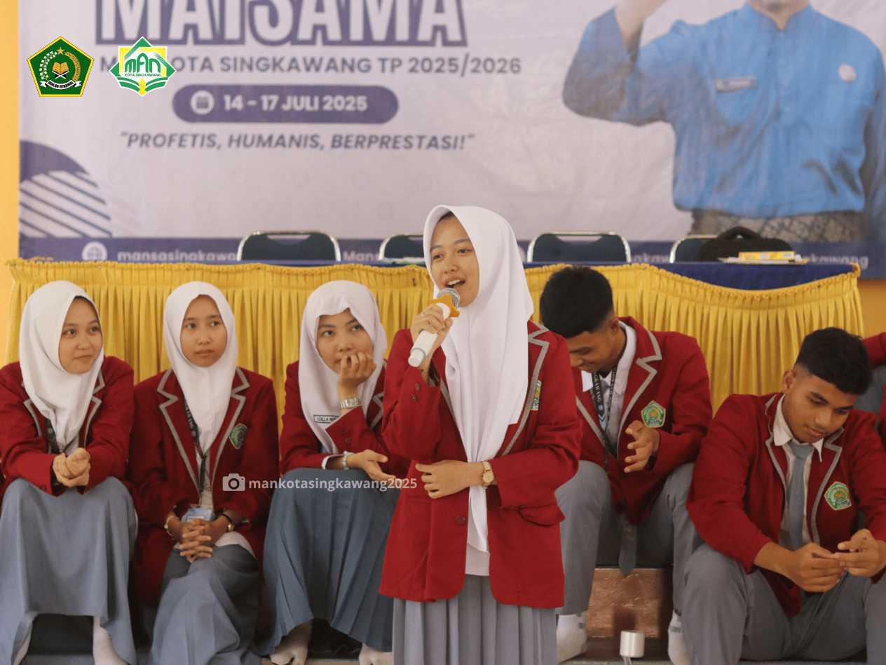 Selasa, 15 Juli 2025 merupakan hari kedua pelaksanaan Masa Ta’aruf Siswa Madrasah (MATSAMA) di MAN Kota Singkawang. Kegiatan dimulai pukul 07.00 WIB dengan apel pagi dan ice breaking yang dipandu oleh panitia serta penanggung jawab kelompok. Kegiatan ini bertujuan untuk memastikan kesiapan peserta didik dalam mengikuti rangkaian kegiatan dengan penuh semangat dan kekompakan.
