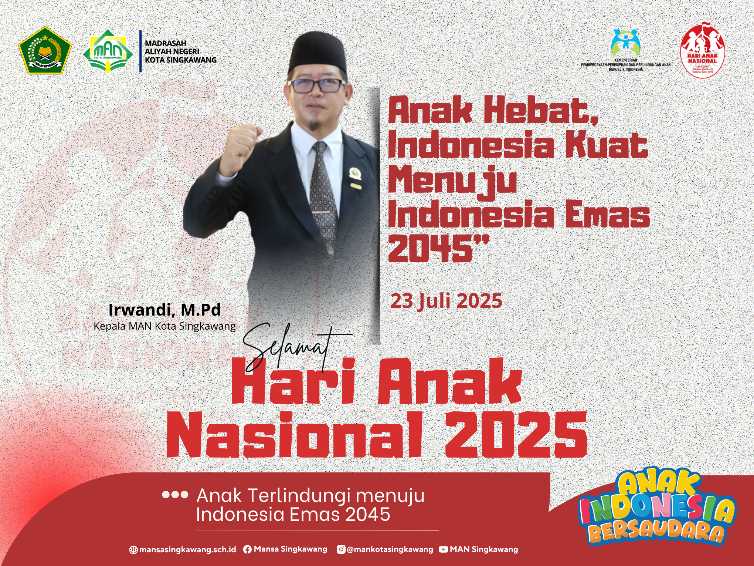 Peringatan tahun ini mengusung tema nasional “Anak Hebat, Indonesia Kuat Menuju Indonesia Emas 2045” dengan tagline inspiratif “Anak Indonesia Bersaudara.” Tema ini menjadi motivasi kuat bagi MAN Kota Singkawang untuk terus menciptakan lingkungan pendidikan yang mendukung tumbuh kembang anak secara optimal—baik secara fisik, mental, maupun spiritual. Kegiatan ini diharapkan dapat menanamkan nilai persaudaraan, kepedulian, serta semangat membangun bangsa sejak usia dini demi menyongsong 100 tahun kemerdekaan Indonesia.