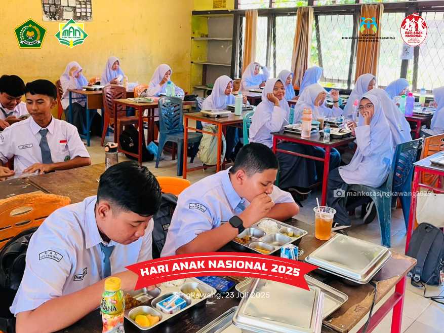Dalam rangka memperingati Hari Anak Nasional yang jatuh pada tanggal 23 Juli 2025, MAN Kota Singkawang melaksanakan serangkaian kegiatan yang melibatkan seluruh warga madrasah. Kegiatan dimulai dengan pembacaan Alquran di kelas masing-masing yang dipandu langsung oleh wali kelas, sebagai bentuk pembiasaan akhlak mulia dan spiritualitas bagi para siswa. Suasana khidmat dan semangat terlihat dari antusiasme para siswa mengikuti kegiatan ini sejak pagi hari.