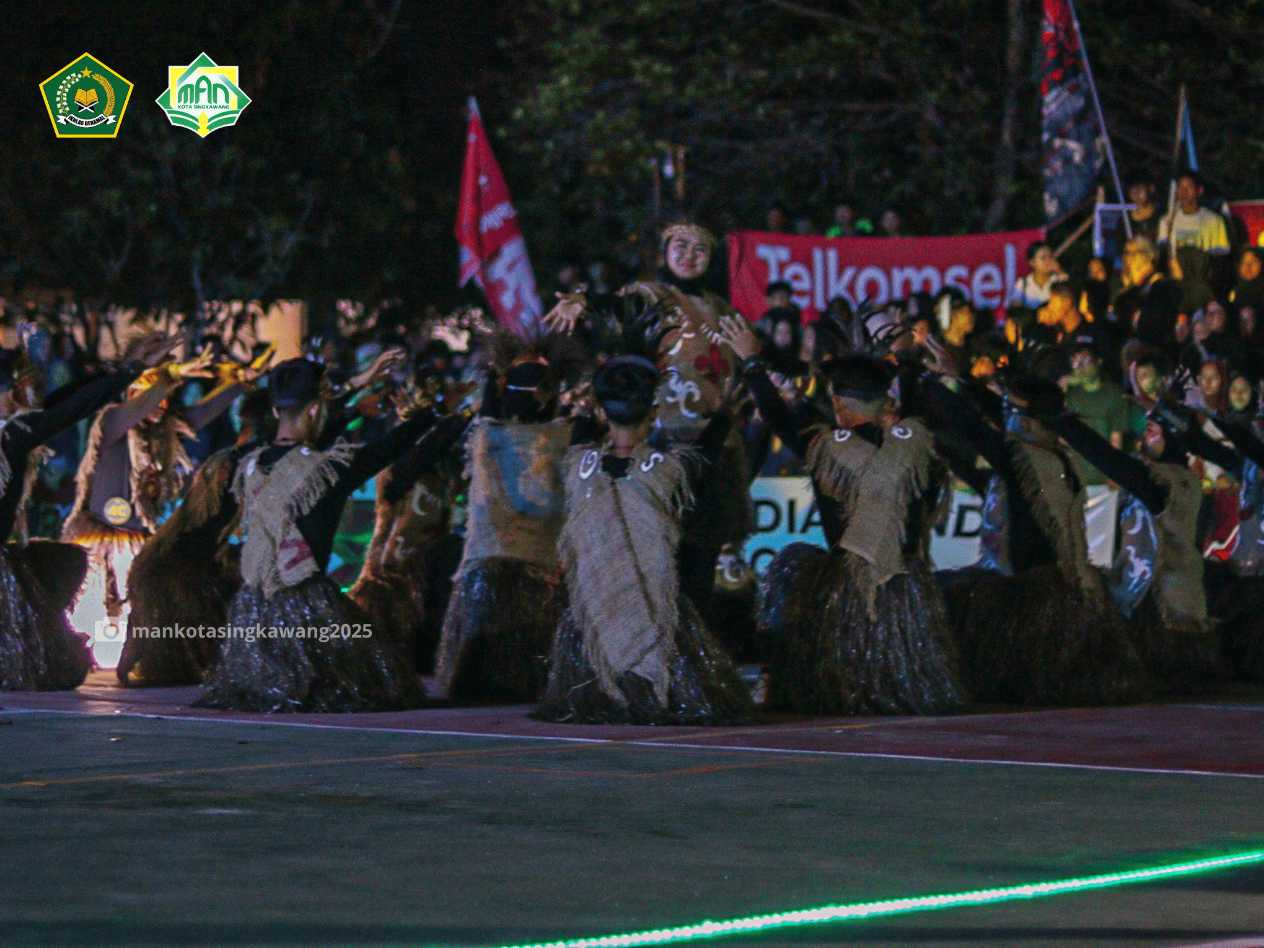 Tim MAN Kota Singkawang sukses mencuri perhatian pada kategori Varlinedsic (variasi formasi musik) di ajang GRADA PASMANTI COMPETITION 2025 yang digelar di SMAN 3 Singkawang. Pada penampilan malam hari tersebut, para peserta tampil memesona dengan kostum baju adat Papua yang penuh warna dan energik, menampilkan perpaduan harmonis antara formasi dinamis, ketukan musik yang solid, serta ekspresi budaya yang kuat. Sorak dukungan dari para penonton memenuhi arena, membuat penampilan tim MAN Kota Singkawang menjadi salah satu momen paling berkesan dalam kompetisi bergengsi tersebut.