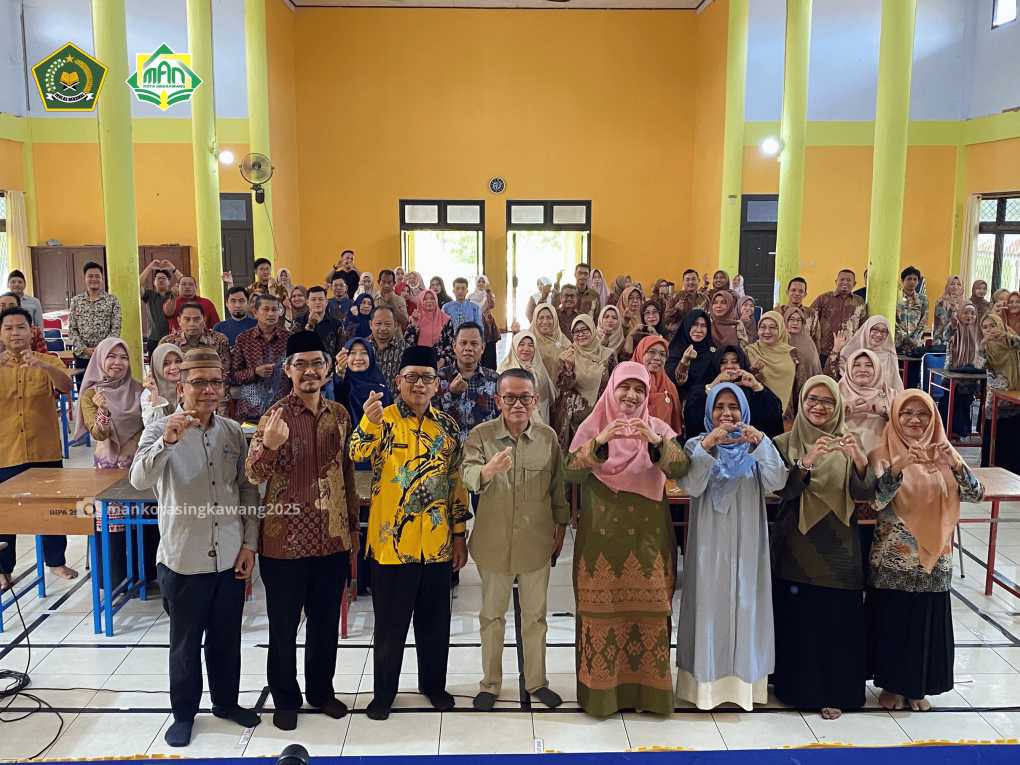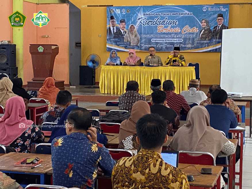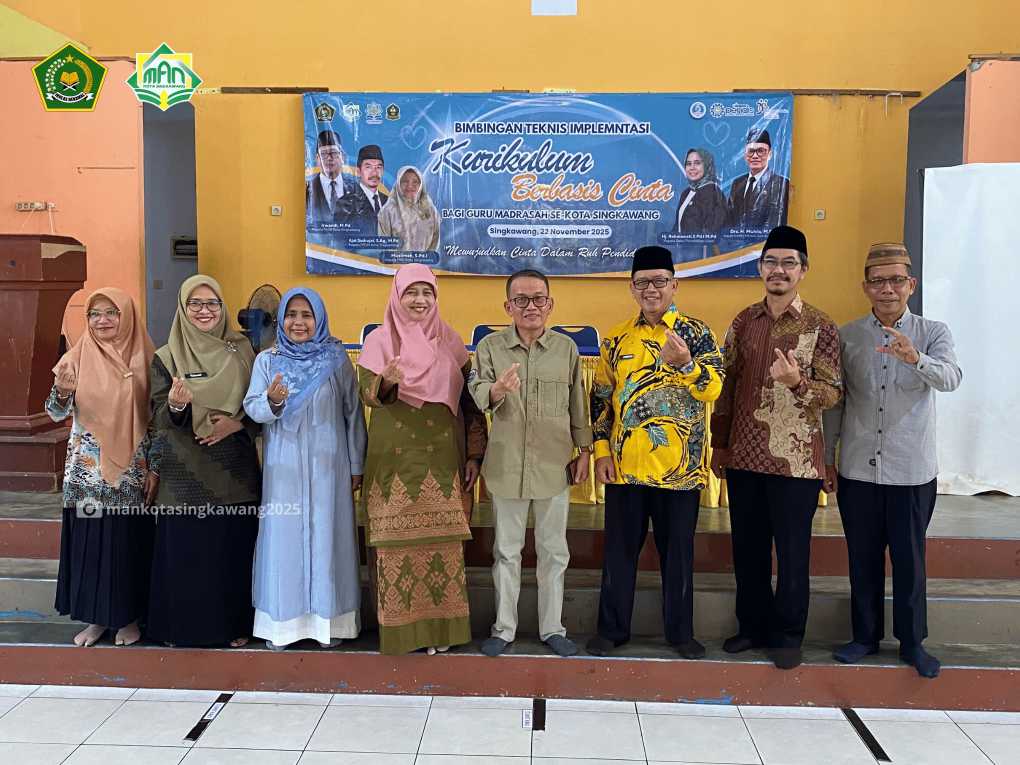 Singkawang, 22 November 2025 Bimbingan Teknis Implementasi Kurikulum Berbasis Cinta (KBC) bagi seluruh madrasah negeri di Kota Singkawang resmi digelar di Aula PSBB MAN Kota Singkawang. Kegiatan kolaboratif ini digagas oleh tiga pimpinan madrasah: Kepala MAN Kota Singkawang Irwandi, M.Pd., Kepala MTsN Ajat Sudrajat, S.Ag., M.Pd., dan Kepala MIN Muslimah, S.Pd.I. Kegiatan yang berlangsung dari pukul 08.00 hingga 15.00 WIB ini menghadirkan seluruh guru dari jenjang Aliyah, Tsanawiyah, hingga Ibtidaiyah sebagai peserta utama.