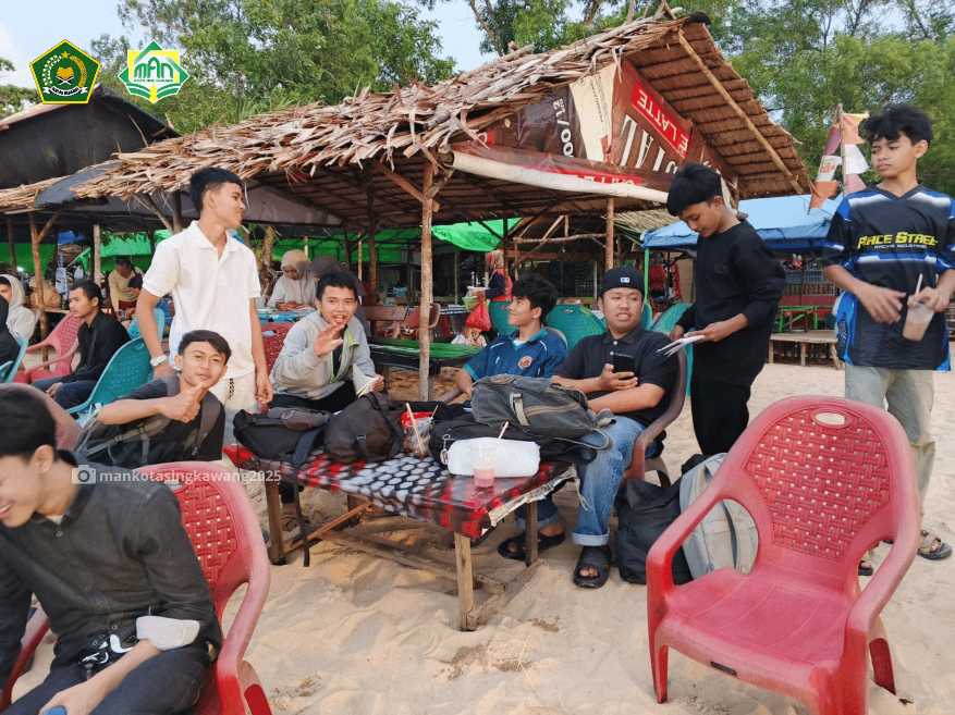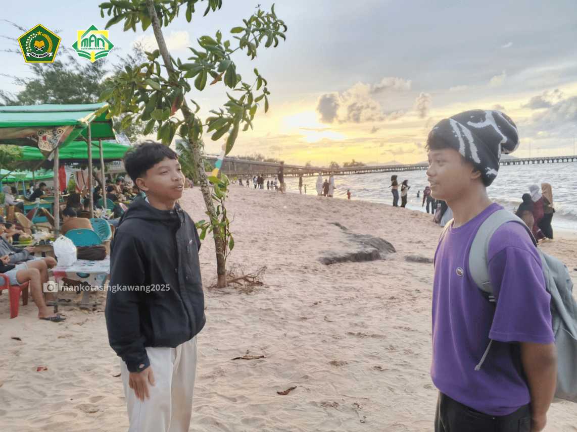 Minggu, 7 Desember 2025 Asrama MAN Kota Singkawang melaksanakan kegiatan rihlah semester yang dipadukan dengan evaluasi pembelajaran di Pantai Gratis sebagai bentuk penyegaran dan penguatan kebersamaan antarsantri. Kegiatan ini menjadi ajang refreshing setelah melewati rangkaian proses belajar selama satu semester, sekaligus menumbuhkan semangat baru bagi seluruh peserta didik. Suasana pantai yang teduh dan alami memberikan nuansa rileks bagi para santri dalam mengikuti seluruh rangkaian acara.