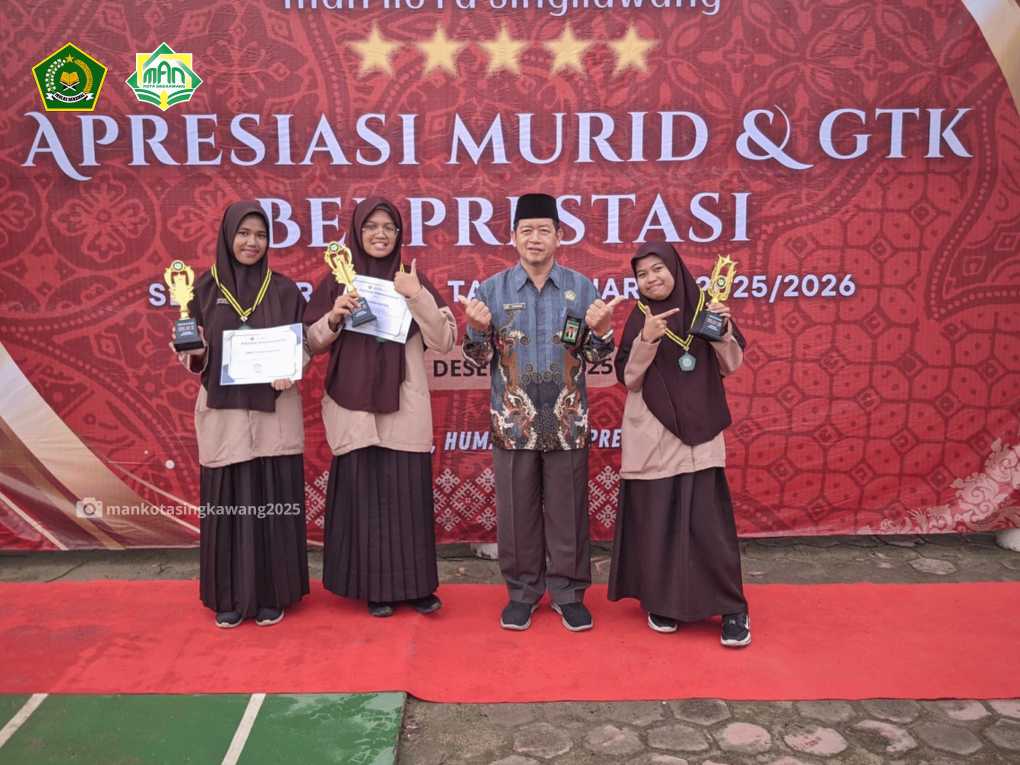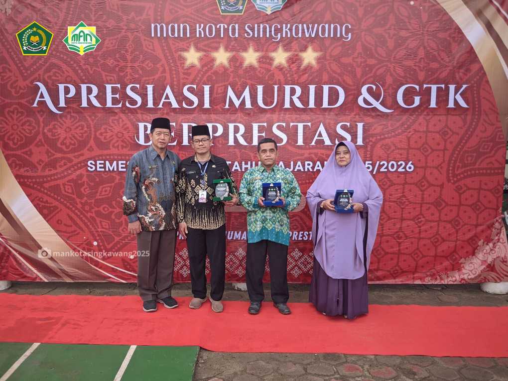 Singkawang, 19 Desember 2025. MAN Kota Singkawang menggelar kegiatan apresiasi murid dan Guru Tenaga Kependidikan (GTK) berprestasi pada semester ganjil Tahun Ajaran 2025/2026. Acara ini dibuka secara resmi melalui sambutan Kepala Madrasah, Irwandi, M.Pd, yang menekankan pentingnya budaya apresiasi sebagai bentuk penghargaan atas kerja keras, dedikasi, dan prestasi seluruh warga madrasah dalam mendukung mutu pendidikan.