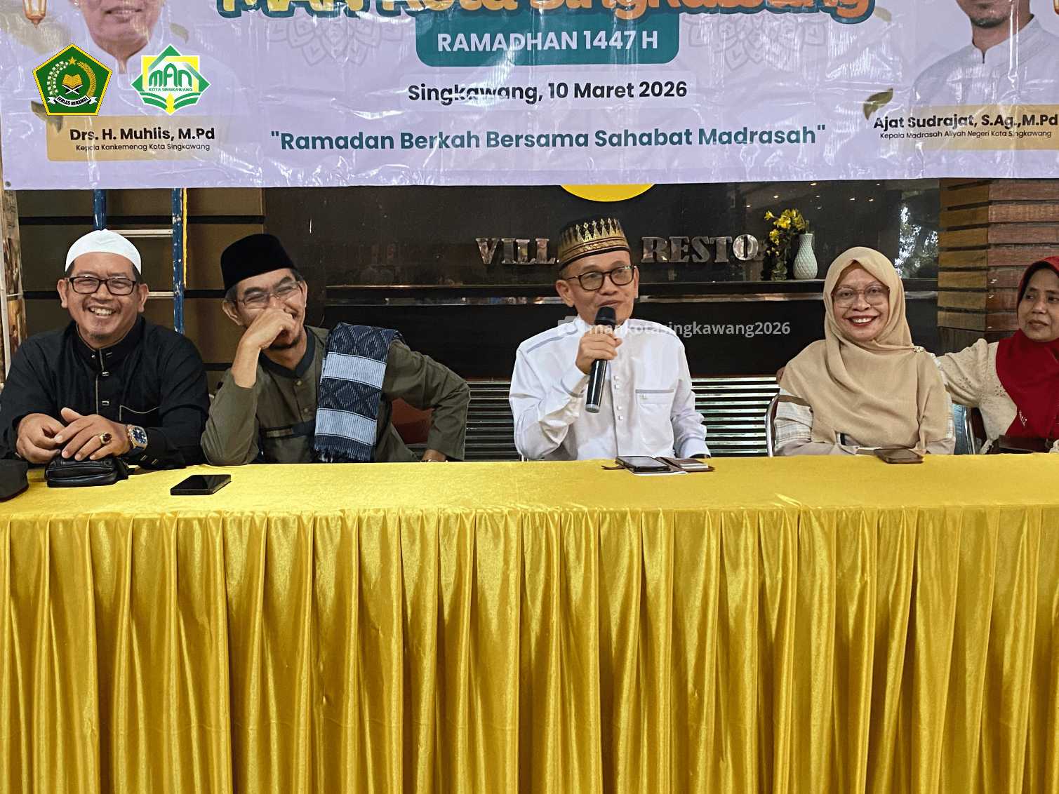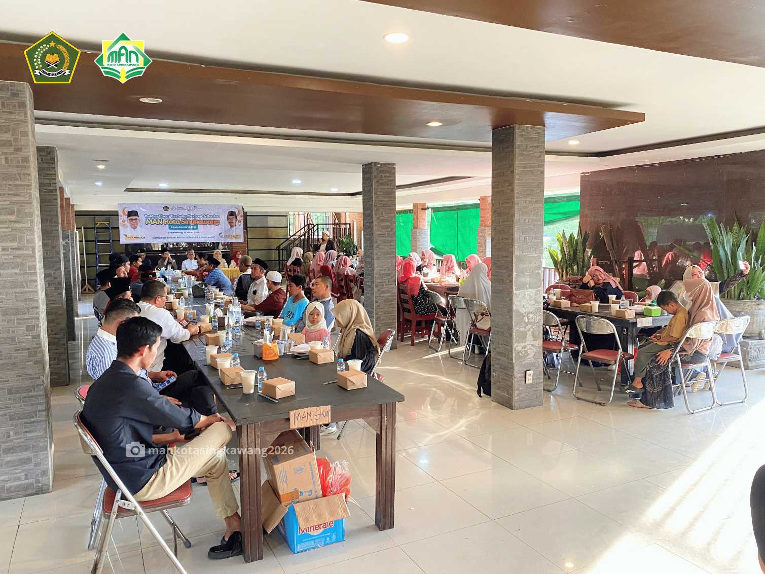 Suasana penuh kehangatan dan kebersamaan mewarnai kegiatan buka puasa bersama seluruh Guru dan Tenaga Kependidikan (GTK) MAN Kota Singkawang yang dilaksanakan pada Selasa, 10 Maret 2026 di Villa Resto Kampung Batu Singkawang. Kegiatan ini turut dihadiri oleh Kepala Kankemenag Kota Singkawang Drs. H. Muhlis, M.Pd beserta istri, Kasi Pendis Hj. Rohmawati,M.Pd, Pengawas Madrasah Hj. Idawati, M.Pd Ketua Komite Madrasah Legimin,M.Pd serta Kepala MAN Kota Singkawang periode sebelumnya Irwandi, M.Pd Kehadiran para tamu tersebut semakin menambah kehangatan silaturahmi keluarga besar madrasah di bulan suci Ramadan.