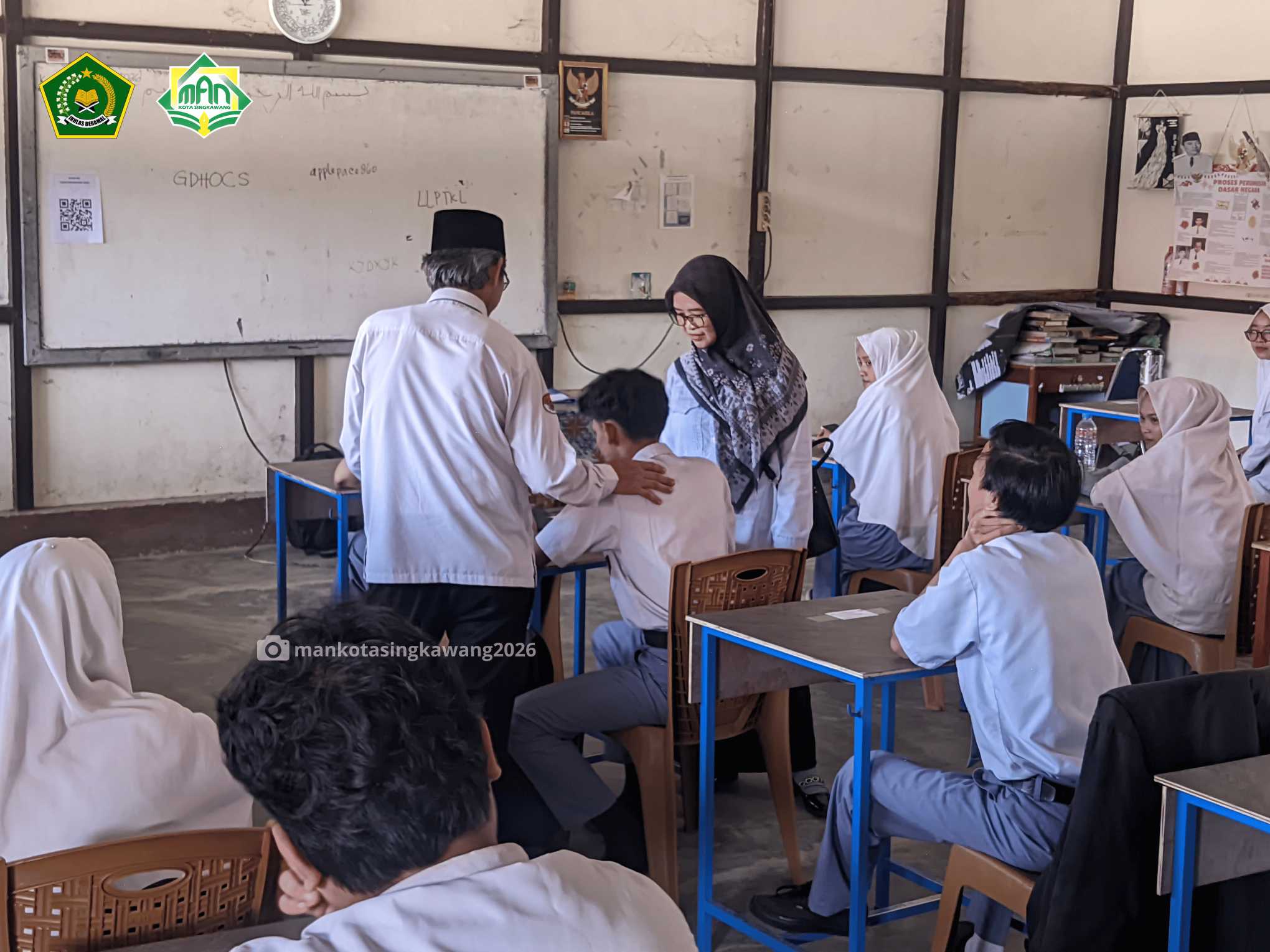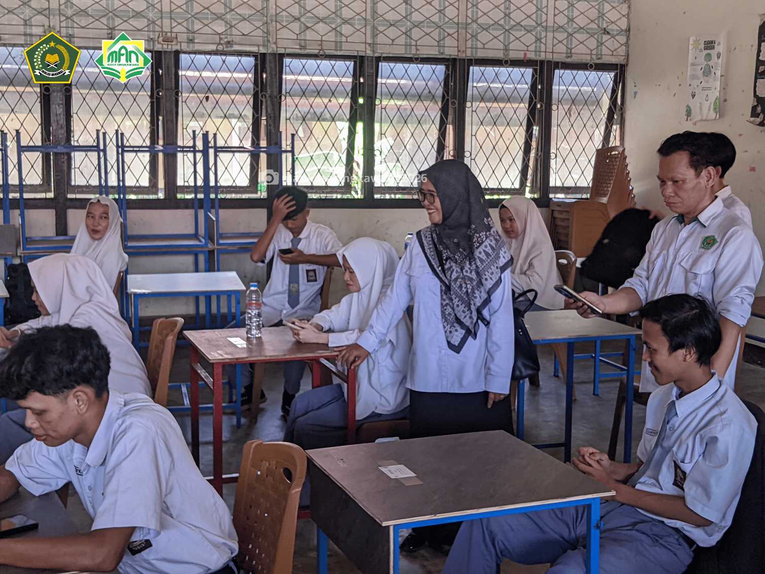 Dalam rangka memastikan kelancaran pelaksanaan ujian, pengawas madrasah Idawati, M.Pd bersama Kepala Madrasah Ajat Sudrajat, S.Ag., M.Pd dan Ketua Panitia Ghopuri, S.Pd melakukan monitoring langsung ke setiap ruang kelas. Kunjungan ini bertujuan untuk mengecek kesiapan serta pelaksanaan ujian di lapangan, mulai dari aspek teknis, jaringan, hingga perangkat yang digunakan oleh peserta ujian.