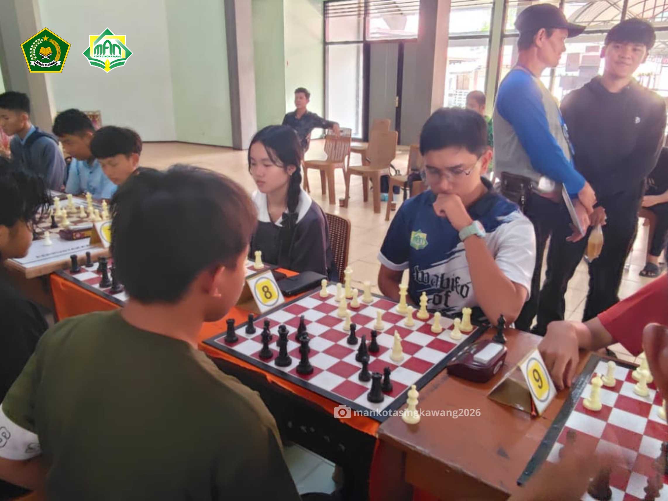 Murid MAN Kota Singkawang menunjukkan semangat berprestasi dengan mengikuti undangan pertandingan catur tingkat SMA/sederajat yang dilaksanakan di Aula SMKN 1 Singkawang. Kegiatan ini menjadi ajang unjuk kemampuan sekaligus mempererat silaturahmi antar pelajar dari berbagai sekolah. Tiga perwakilan terbaik yang diturunkan adalah Budiman (XI C), Arif Fahri Aslam (X H), dan Rizki Kurniawan (X C).