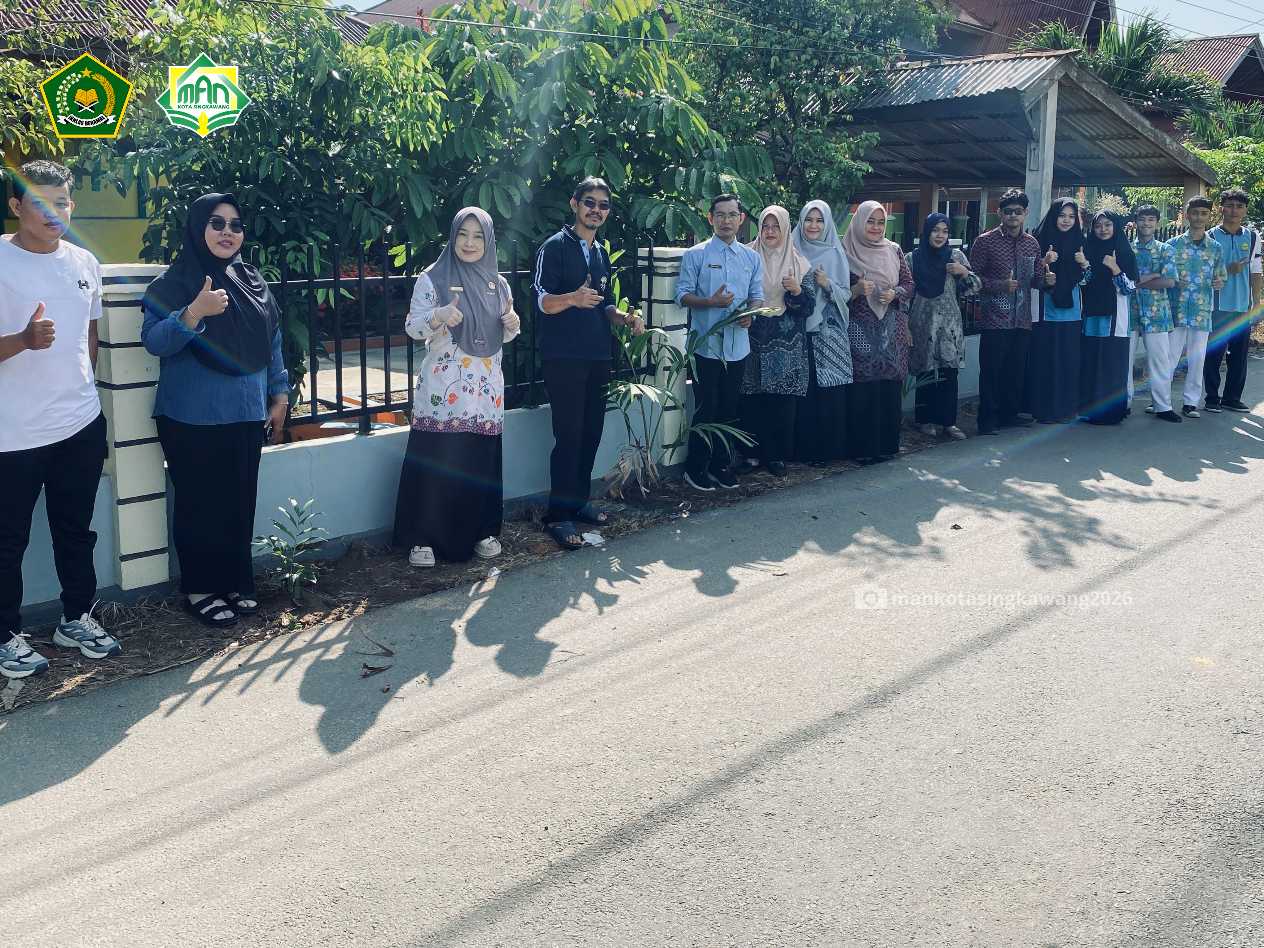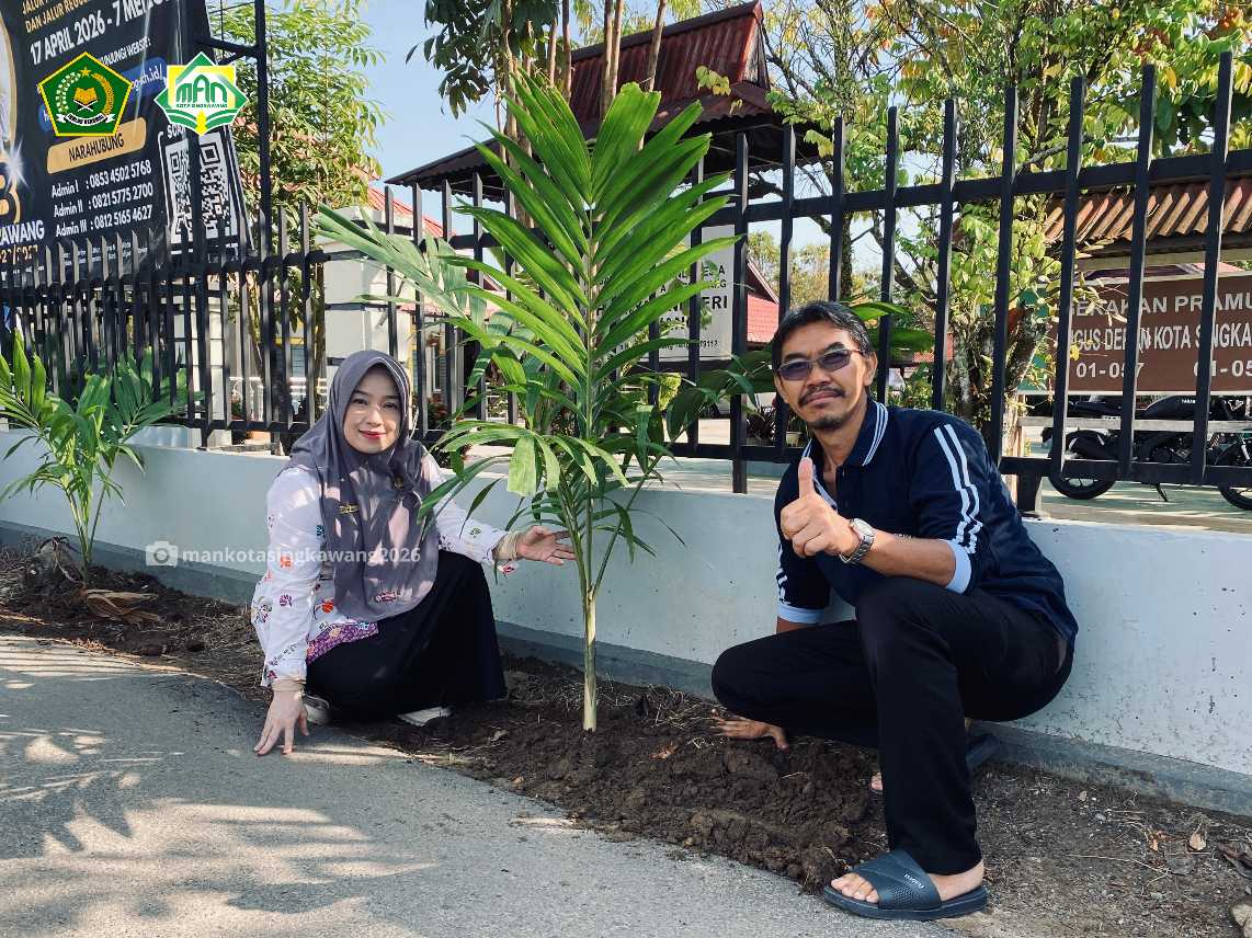 Memperingati Hari Bumi Tahun 2026 sekaligus mendukung program Adiwiyata madrasah, MAN Kota Singkawang melaksanakan kegiatan penanaman pohon palem di lingkungan madrasah. Kegiatan ini menjadi wujud nyata kepedulian terhadap kelestarian lingkungan sekaligus investasi jangka panjang bagi generasi mendatang. Suasana penuh semangat dan kebersamaan tampak saat seluruh elemen madrasah turut ambil bagian dalam aksi hijau tersebut.