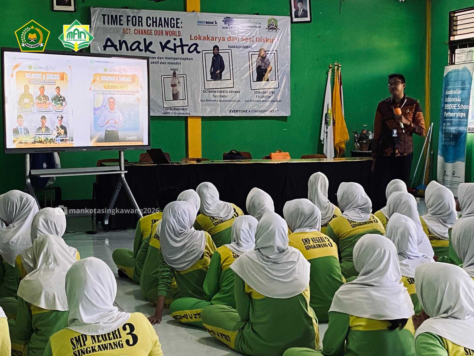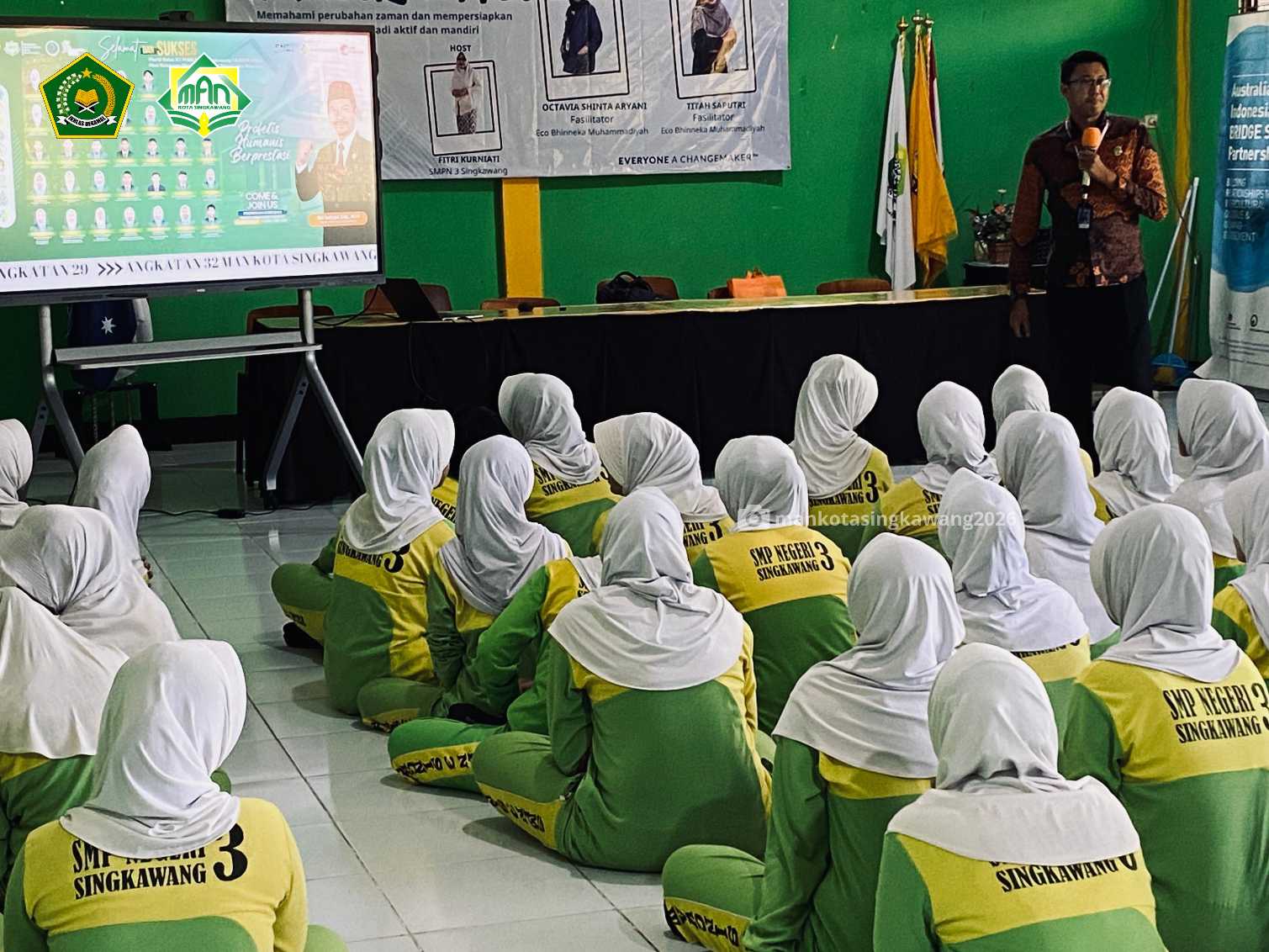 Sosialisasi Penerimaan Murid Baru (PMB) Tahun Ajaran 2026/2027 MAN Kota Singkawang digelar di aula lantai 2 SMP Negeri 3 Singkawang dengan penuh antusias. Kegiatan ini disampaikan langsung oleh Pak Dikki Afriyanda, S.Pd yang memberikan informasi lengkap kepada para siswa terkait peluang melanjutkan pendidikan ke jenjang madrasah.